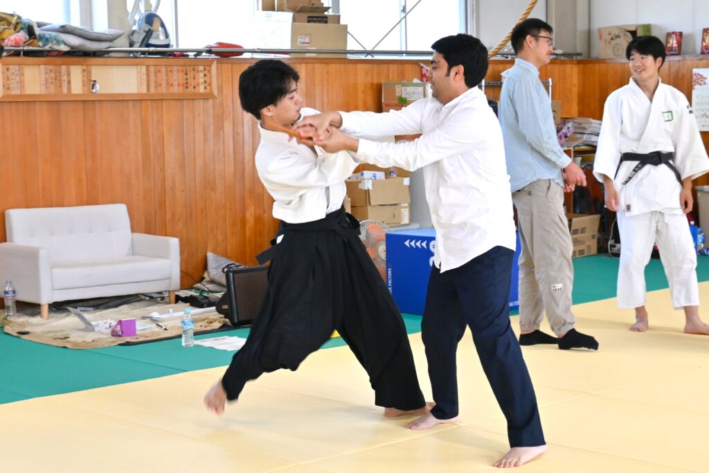 This event was organized in collaboration with the university’s Aikido club. First, the department head Rio Kawasaki gave a lecture on the history and characteristics of Aikido. Next, there was a demonstration at the dojo, after which the participants tried out the techniques for themselves.