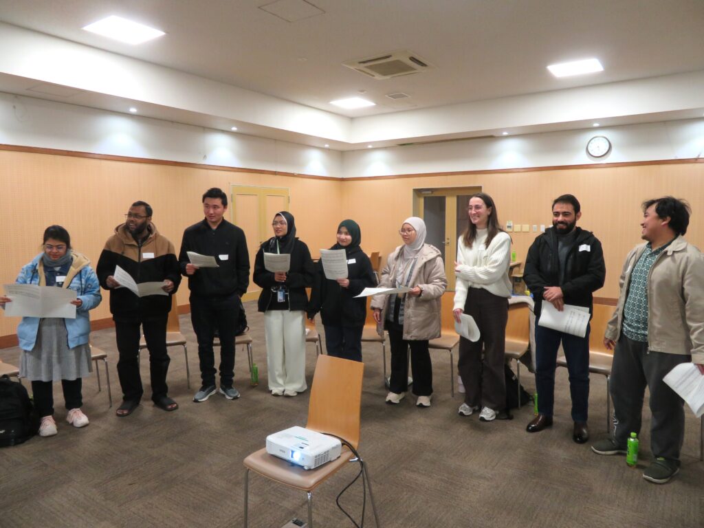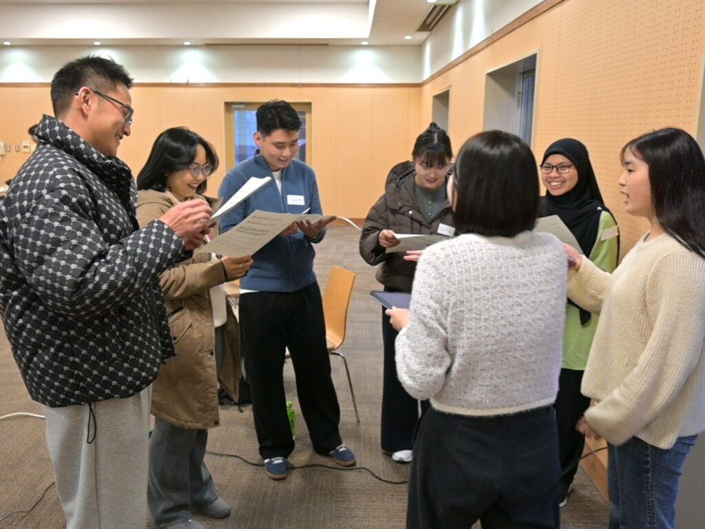 2026年1月23日(金)、本学の留学生等を対象とした第4回日本文化研修会「日本の歌体験」を、本学の課外活動団体「アカペラ・合唱サークルJingle-Jangle」の協力のもと開催し、14名の留学生等が参加しました。