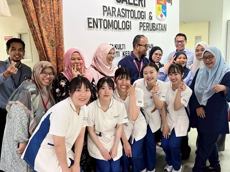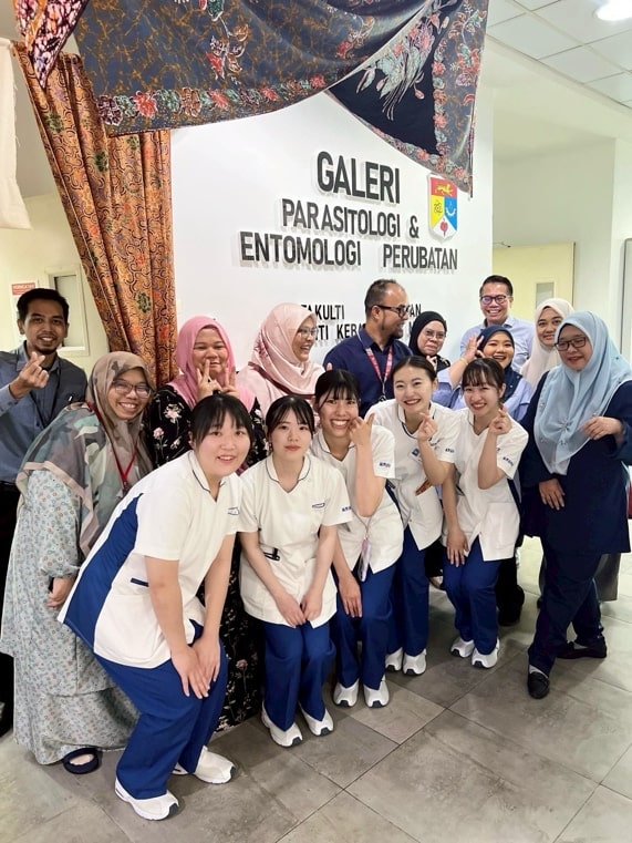 大学内にある、解剖学博物館や寄生虫学展示会、ガンマナイフセンターへの訪問では、それぞれの施設の先生方が説明してくださいました。解剖学博物館では、健康な臓器だけでなく、様々な疾患の臓器もプラスチック標本化されており、実際に目で見て疾患を学ぶ機会となりました。他にも、訪問看護への同行や、HPKKと呼ばれる小児専門病院への見学を行いました。訪問看護に同行するにあたって、マレーシアでの地域医療制度についても学びました。HPKKでは、院内学級以外にも、多感覚を刺激することができる遊び場や、リハビリ用プールなど、子どもの遊び心と治療を掛け合わせた設備を目にすることができました。他にも、マレーシアの看護形態について学んだり、学生らに混ざり講義へ参加したり、メインキャンパスの見学などもしました。